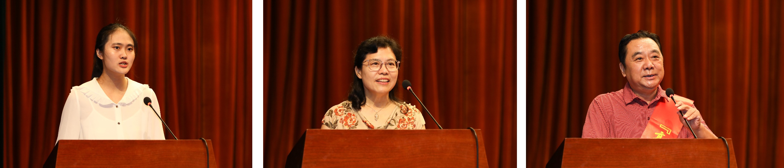 “高尚师德”奖获得者胡亚球老师总结了自己多年的教学生涯,表示当一名好教师除了做好教学科研之外,更要对学生有发自心底的关爱,做到尊重职业、淡泊情怀、志向高远。他还勉励每一位老师都能在对教育事业的美好期许中不断体悟提高,与学校、青年学子和祖国一起成长奋进。