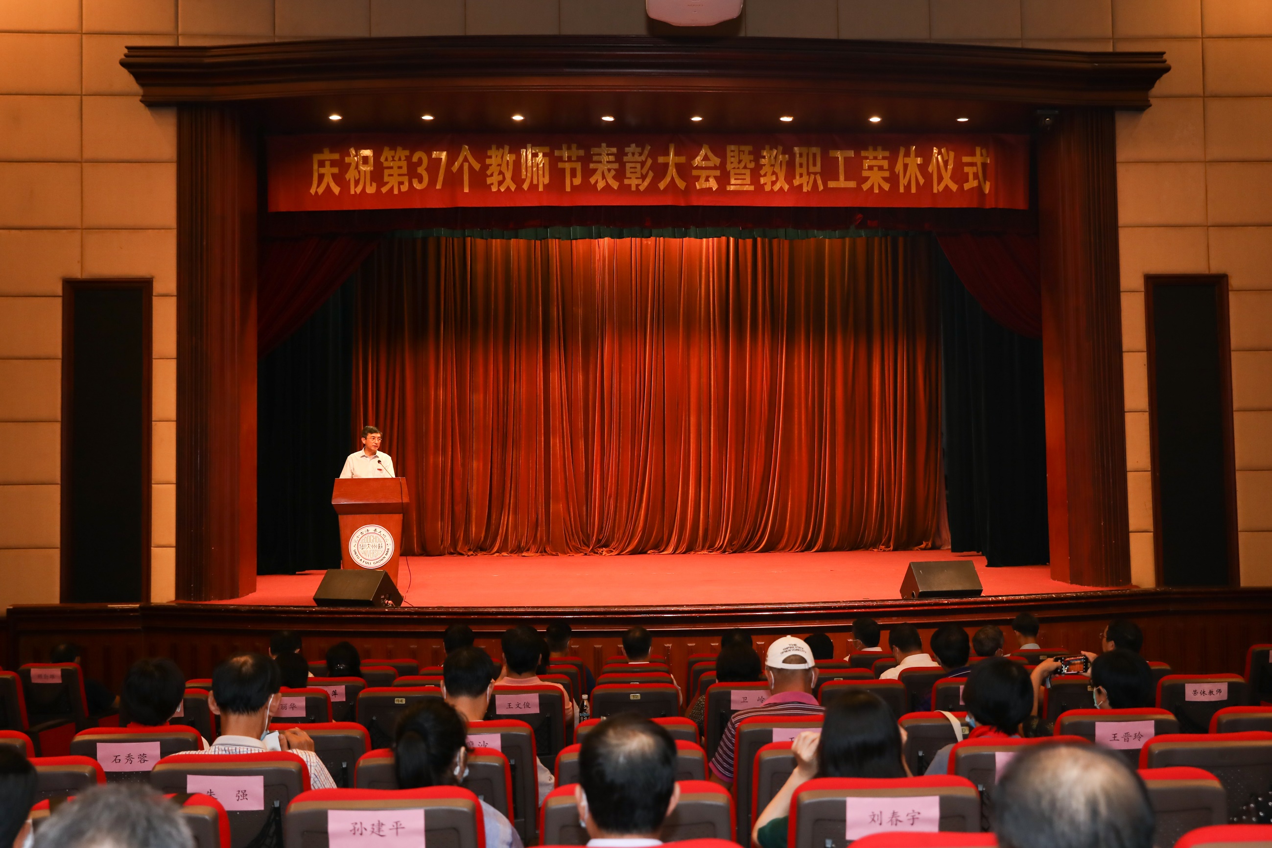 9月9日下午,我校在天赐庄校区敬贤堂召开庆祝第37个教师节表彰大会暨教职工荣休仪式。全体校领导,“高尚师德”奖教金获奖教师,荣休教职工及工作满30年的教职工代表,各学院(部)、部门、直属单位的主要负责人和师生代表参加了会议。会议由校长熊思东主持。