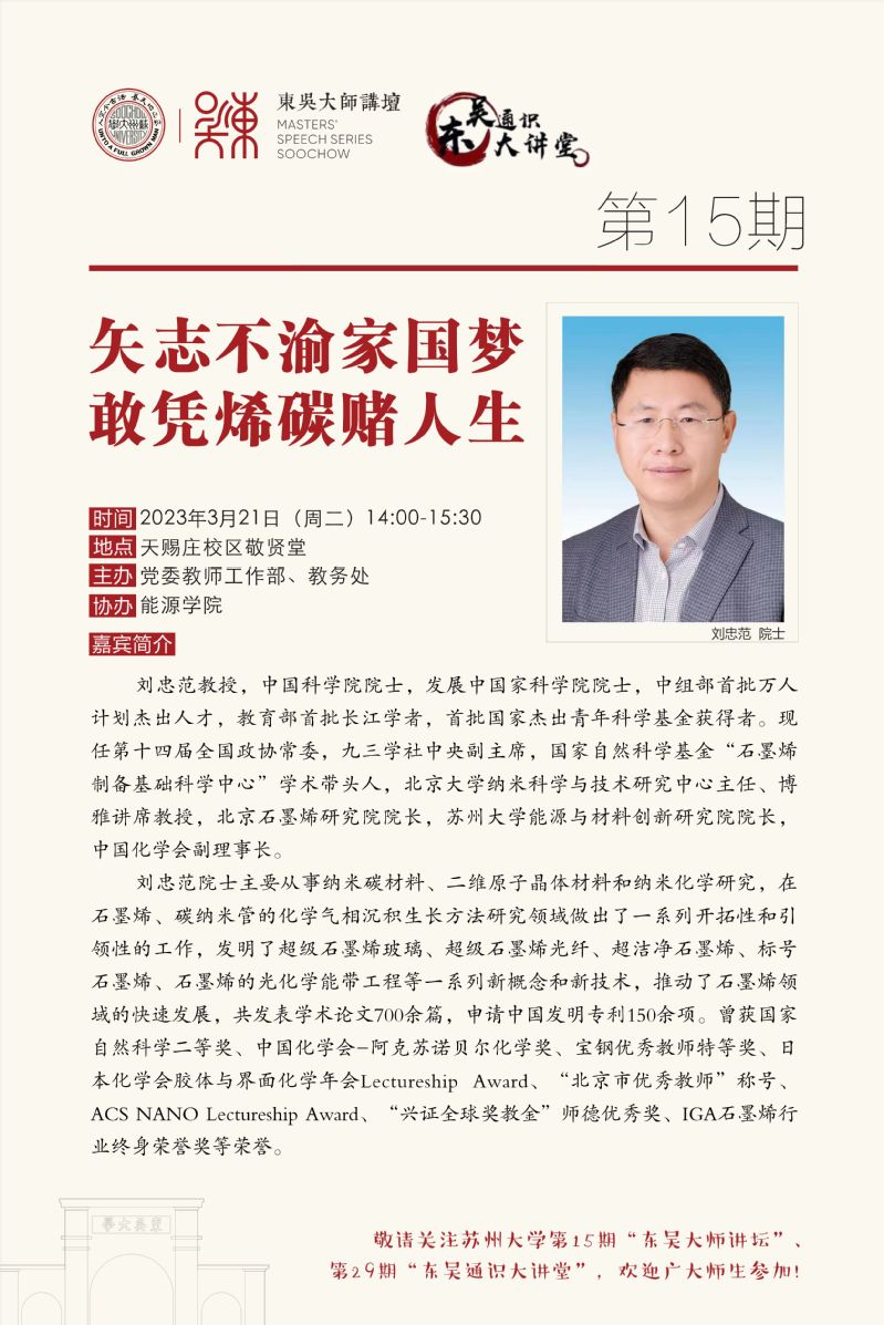 敬请关注苏州大学第十五期“东吴大师讲坛”暨第二十九期“东吴通识大讲堂”,欢迎广大师生参加!