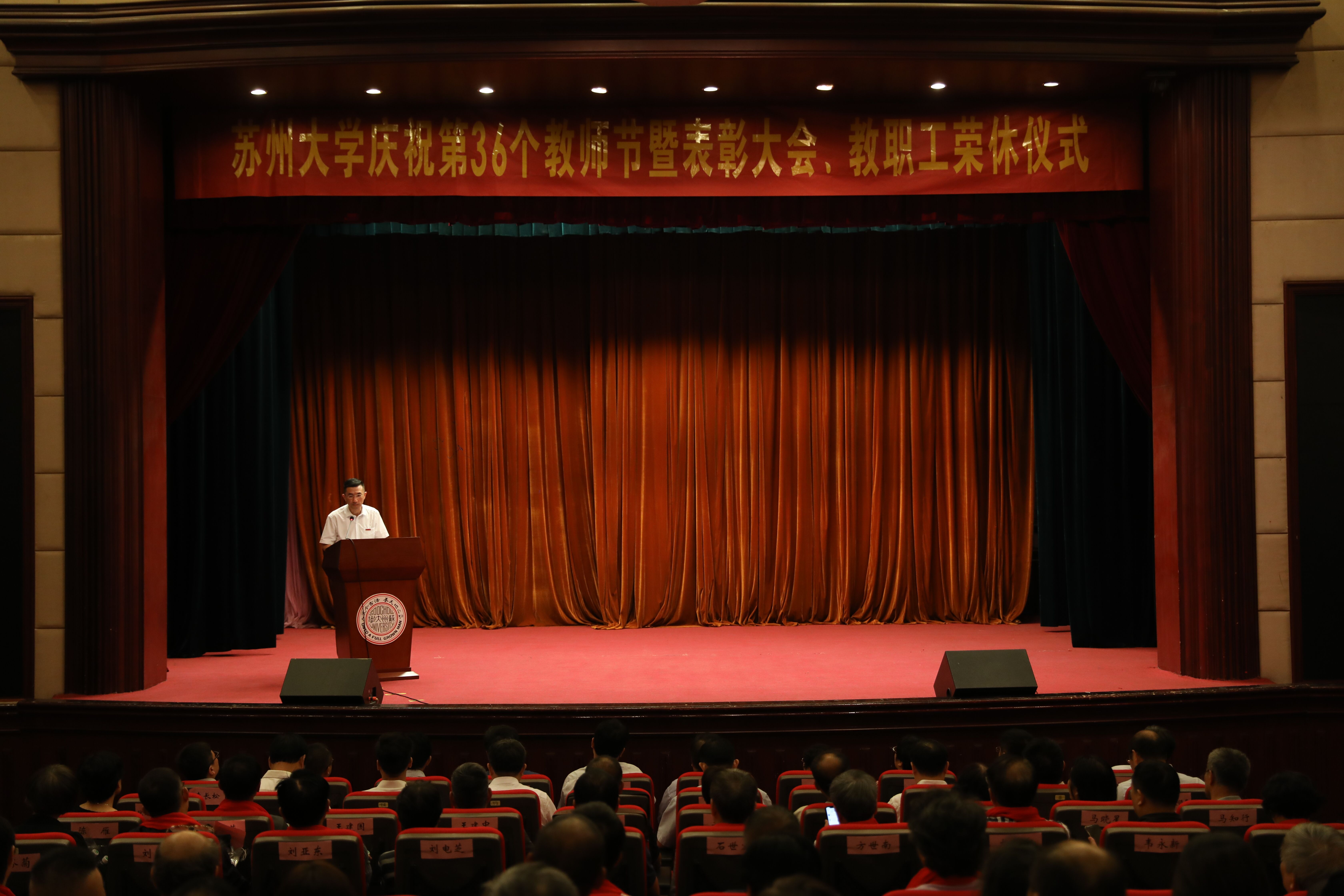 江涌书记代表学校党委、行政向包括离退休老同志在内的全体教职员工致以节日的祝福和亲切的问候,向受到表彰的老师们表示热烈的祝贺。他指出,在过去一年里,全校广大教职工在校党委领导下,瞄准一流大学建设目标,坚持立德树人根本任务,扎实推进“双一流”建设,持续深化内涵式发展,为夺取疫情防控和学校事业发展“双胜利”做出了积极的贡献。结合学校当前工作,江涌书记提出三个方面的意见:一是要认真学习贯彻习近平总书记教育重要论述,坚守立德树人初心使命。完善以立德树人为根本的“五育”并举的一体化育人体系,探索构建促进学生全面发展、具有苏大特色的立德树人长效机制。广大教师要牢记践行“四有好老师”标准,争做学生锤炼品格、学习知识、创新思维和奉献祖国的引路人。二是大力弘扬伟大抗疫精神,凝聚“双一流”建设的强大动力。全校师生要认真学习贯彻落实习近平总书记系列重要讲话精神,使之转化为推进学校“双一流”建设、百廿再出发的强大动力。紧跟国家的发展步伐,在与国家、时代同行中,展现苏大的担当和作为。三是要深化人事制度改革,全面建设高素质专业化创新型教职工队伍。要推进人才队伍治理体系现代化,全面释放人才队伍的创新活力,切实提高教职工的幸福感获得感,巩固发展“近悦远来”的良好生态,为教职工自我提升和职业发展创造更优质的平台,提供更优厚的工作待遇和更贴心的服务保障。