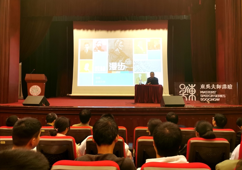 10月22日中午,“东吴大师讲坛”第六讲在天赐庄校区敬贤堂举行。中国科学院院士、北京大学讲席教授、北京国际数学研究中心主任田刚应邀带来题为“漫步数林”的报告。现场座无虚席,我校近400名师生聆听了精彩报告。讲坛由数学科学学院院长张影教授主持。