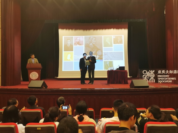 最后,党委教师工作部部长何峰代表学校,向田刚教授赠送《苏州大学校史1900-2019》一书作为纪念,以表达苏大师生对他来访的由衷感谢和诚挚祝福。