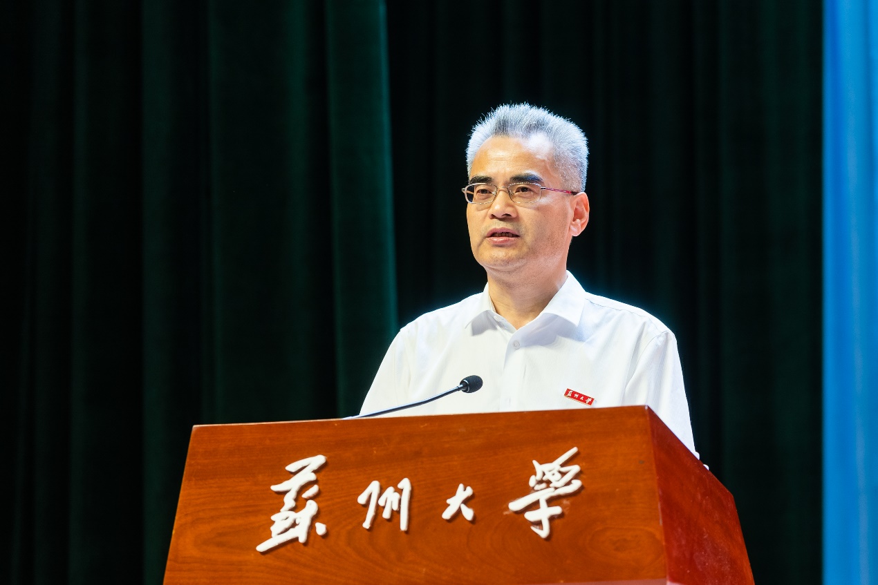 敬文书院院长钱振明作为资深教师代表发言,他分享了自己从教三十余年的心路历程,鼓励青年教师扎根苏大、教师为业;悉心教学、服务学生;追求真理,成就学问。